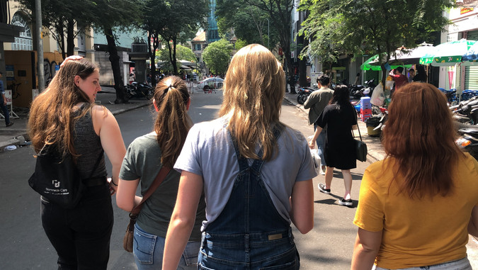 After exploring for awhile, we finally get out our phones out, at least the ones who have Google Maps and service in country. Our group has finally determined to go to the famous Bến Thành Market. It is famous because this market is largest market in central Hồ Chí Minh City! After walking for awhile, and running into other SASers along the way who have just come from Bến Thành Market, we are so excited to get inside. However, the moment we get inside it became like a zoo. We were the animals, and the vendors were the people, trying to sell things to us. They shout, "Come here," "I see you looking, what would you like pretty girl?" Let me start by saying it was a very hectic experience. All we want were a pair of elephant pants or pants that have patterns, and so the first vendor we went to was selling the pants. We stop at the vendor, who is saying 2 pair for "x" amount. I stop and think to myself, that is not bad at all. I pick out two pairs of pants that I want, and was unsure about the number that they were saying because I could not understand their English, so I pull out my Vietnamese đồng. My first lesson I learned when traveling was at this very moment. The lady then snatched my money out of my hand, looking at all of my đồng, and said to me, "You do not have enough." I later learned that if I had not allowed her to see my đồng that I would not have had that issue. Thus, I ended up getting one pair of pants and walking away ripped off.